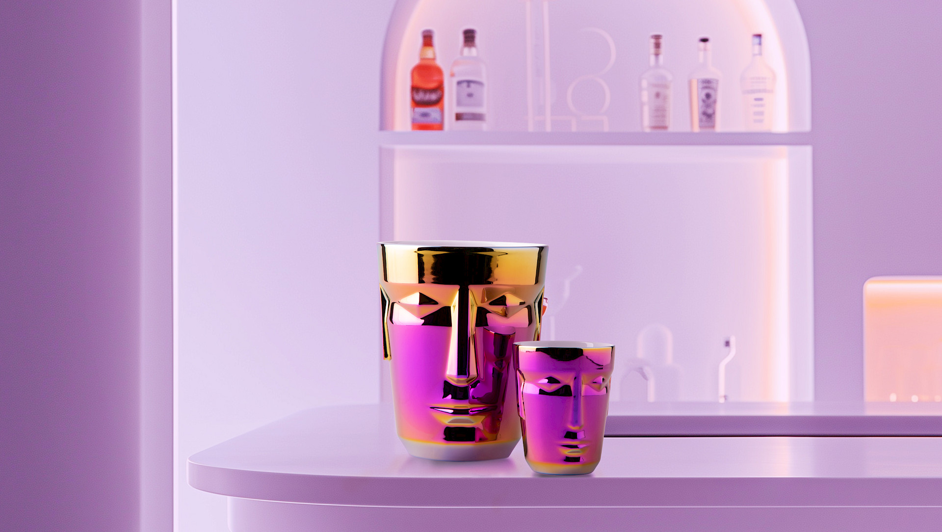 Wir feiern unser 20. Markenjubiläum mit einer limitierten Kollektion opulenter Objekte, die allein durch ihre Formen skulpturale Akzente setzen. Mit den titanisierten Oberflächen Rainbow und Rainbow Blue wirken unser Eiskühler Prometheus und der gleichnamige Cocktailbecher avantgardistisch. Das extravagante Finish glänzt je nach Blickwinkel in vielen metallischen Farben.