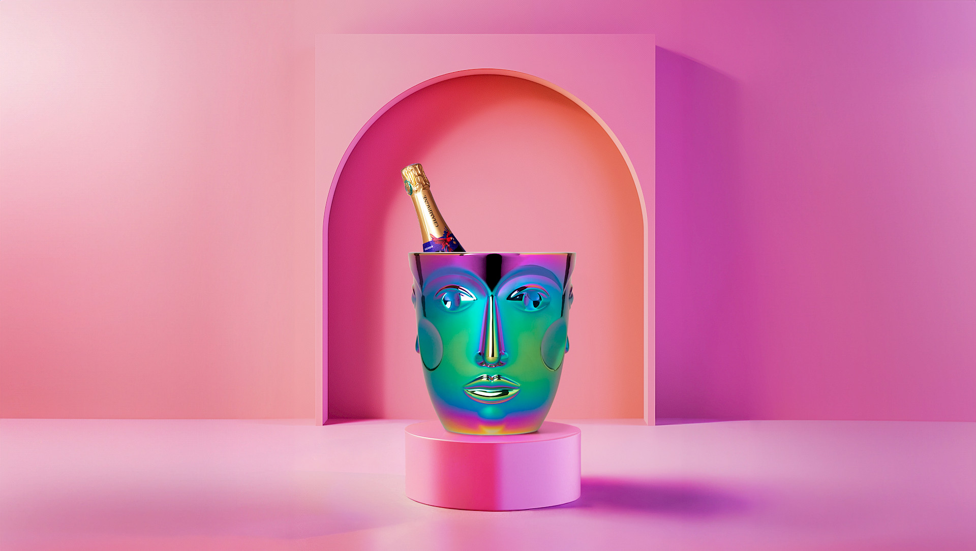We are celebrating our 20th brand’s anniversary with a limited collection of opulent pieces that, thanks to their design, need no accompaniment to set sculptural accents. With the titanised Rainbow and Rainbow Blue finish, the Prometheus ice bucket and cocktail tumbler look avant-garde. The extravagant finish shines in different metallic colours, depending on the angle of view.