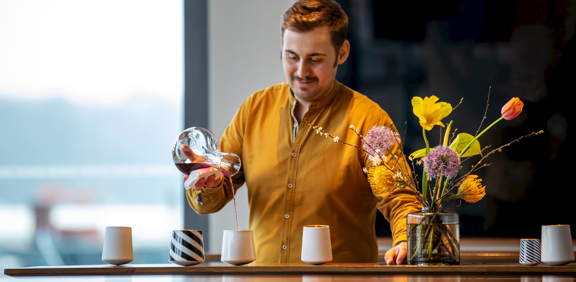 But the expert does also find disadvantages when compared to a glass. “The filling capacity is tricky.” Less of a challenge at home than in the restaurant trade. Nevertheless, it is also an opportunity for restaurateurs to tease the guest out of their comfort zone. You have something new, something to talk about. “This kind of meal out is all about experiences and emotions,” says Mathias. He also sees an additional benefit to the classic glass: If the tumbler is held in the hand for longer, the beverage warms. “But this can also be seen as a positive thing,” suggests Mathias, “because the fact that it warms more quickly may lead to aromas being perceived that would not have been tasted otherwise.”