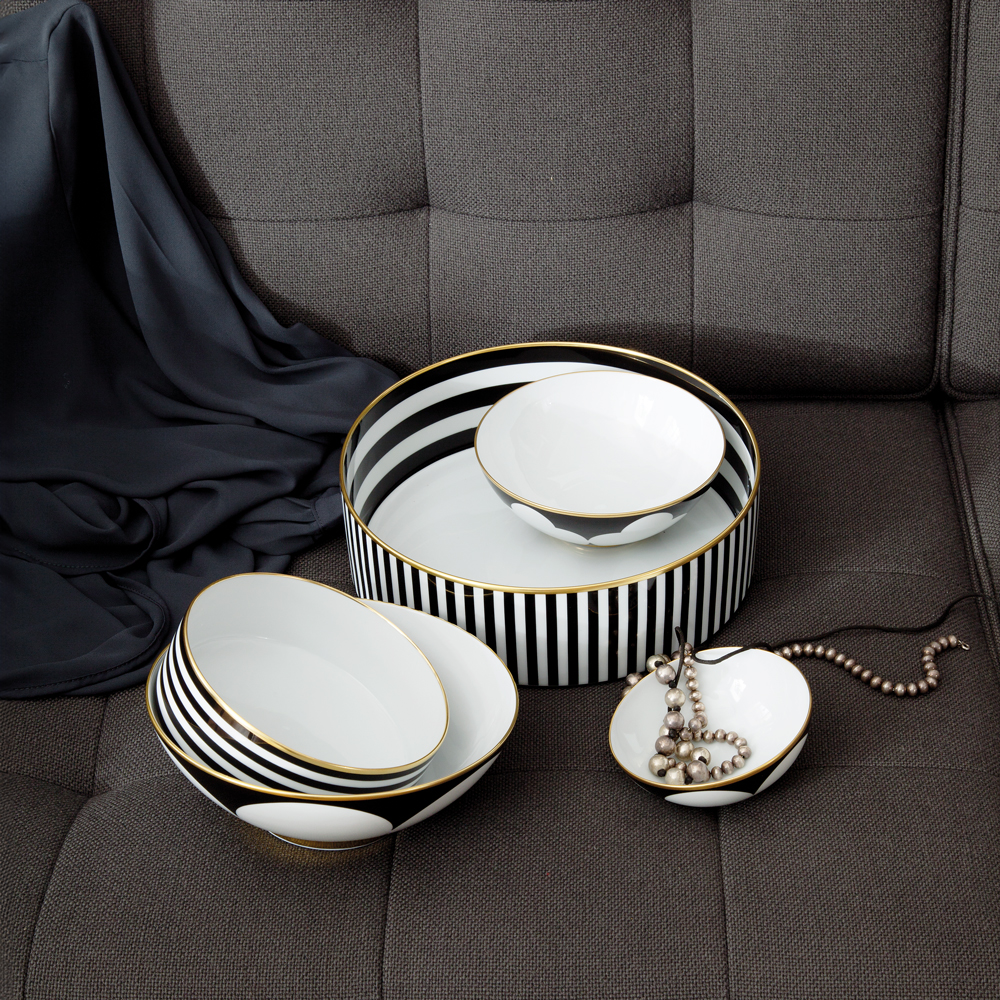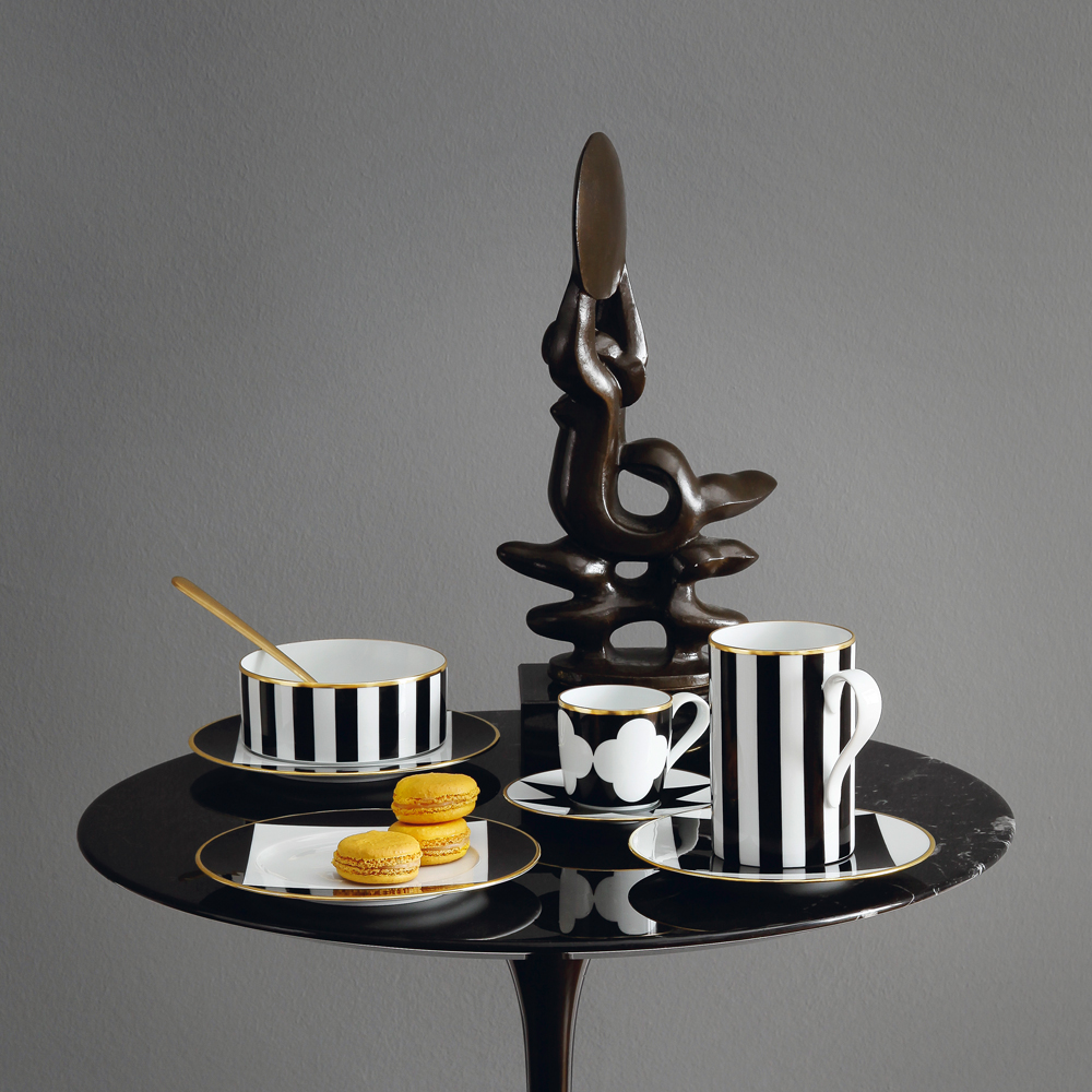Minimalist and nonetheless opulent – with Ca’ d’Oro, the finest burnished gold refines pure black and white contrasts. The geometric interplay gives rise to classic stripes, squares, circles and other architectonic patterns.