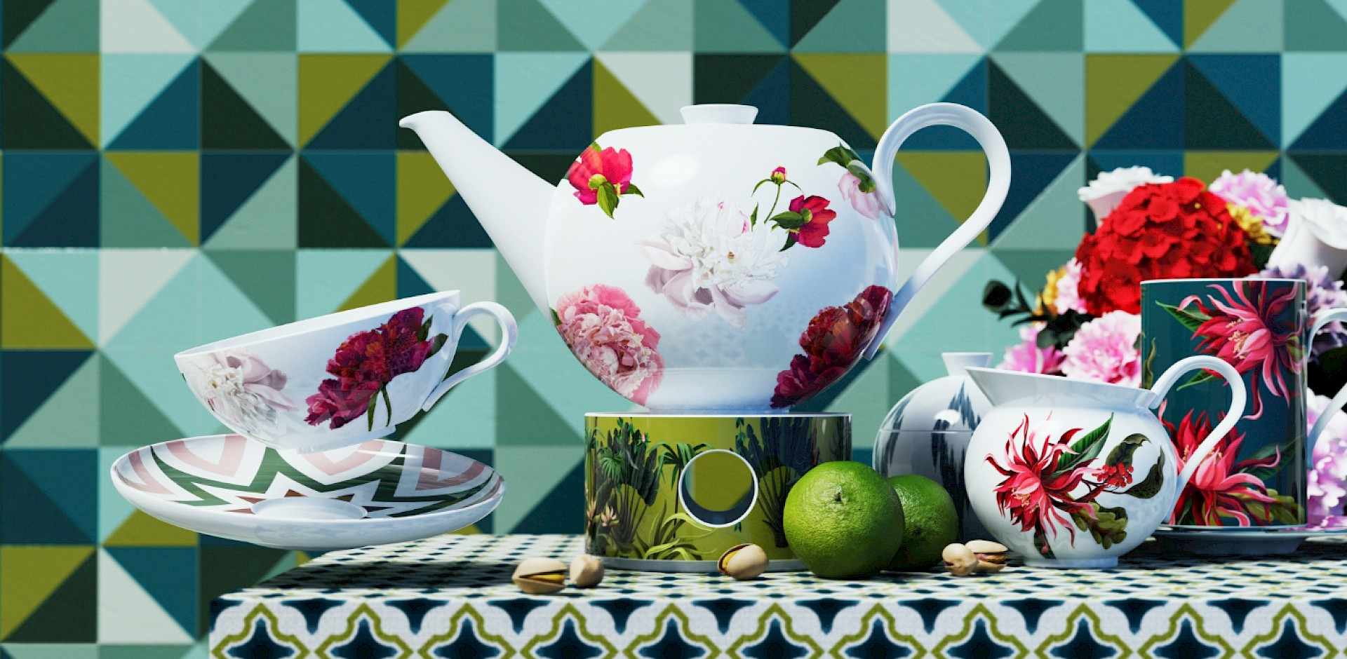 Working with great delicacy of touch and meticulous attention to detail, Michael Sieger and his team have designed a decor that will offer up fresh surprises each and every day. MY CHINA! Paraíso is adorned with an imaginative blend of exotic imagery and decorative elements, like a unique collection that has been gradually pieced together over the course of many holidays. Asian peonies are paired with traditional Mallorcan weave patterns, Portuguese-inspired designs or tropical plants. Designed as standalone pieces, the plates, cups and bowls can be combined in constantly new ways. The result is a cosmos of buoyant lightness and joie de vivre.