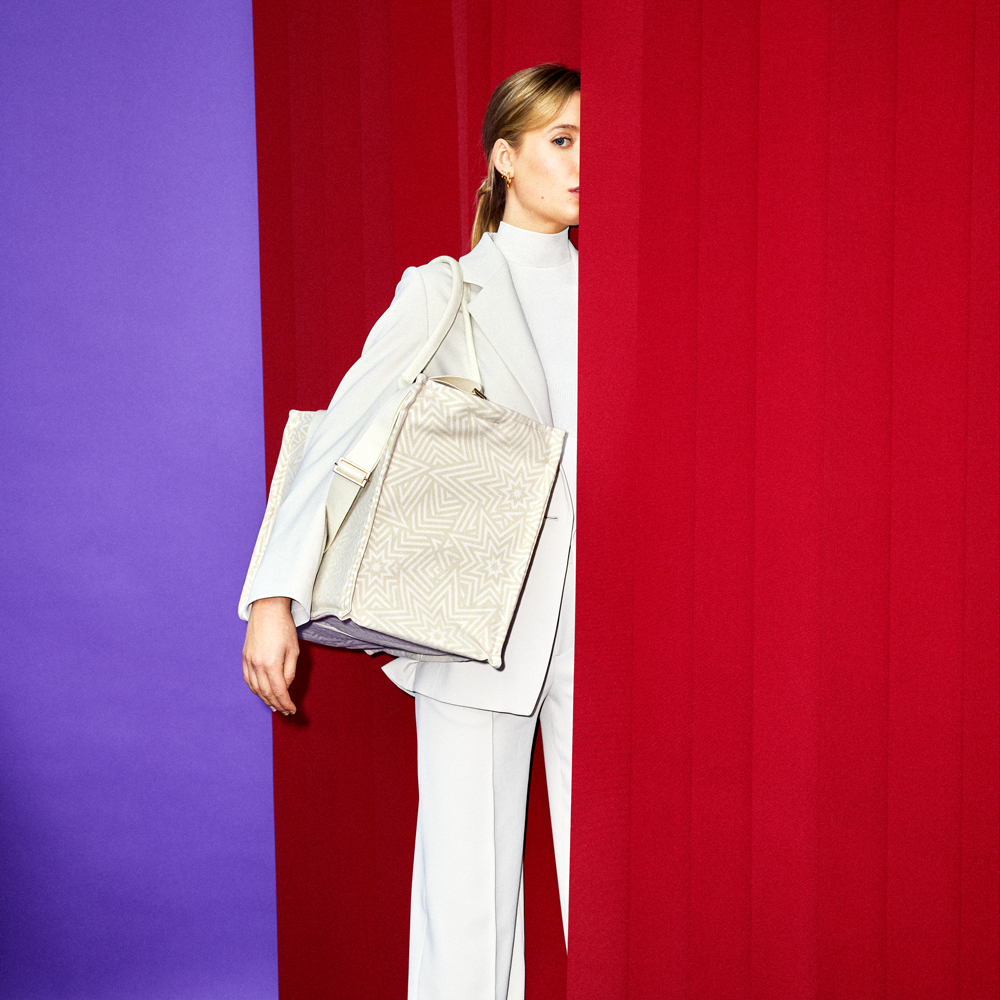 The Star Explosion White design combines light beige shades in a way that’s stylish and harmonious. With the subtle star pattern, every bag is discreet yet eye-catching. A universal all-rounder for leisure and business.