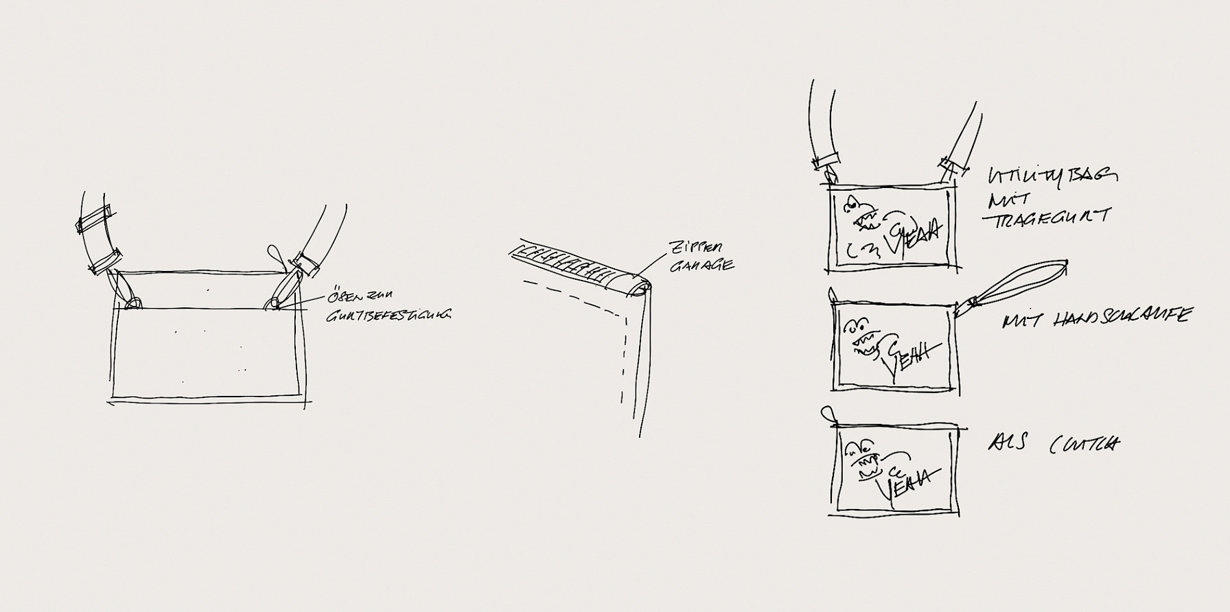 The utility bag can be used as a clutch or, optionally, carried with a handle or worn as a cross-body bag using a strap. Both the strap and handle are supplied with the bag.