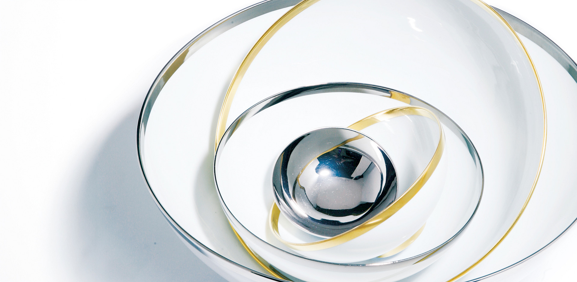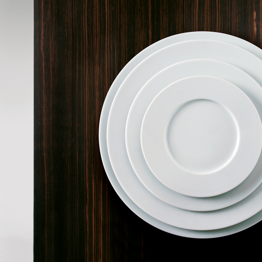 MY CHINA! baut auf drei Grundformen und einem präzise ausgeloteten Maßsystem auf. So passt die Cloche nicht nur auf die verschiedenen Teller und Schalen, sondern kann auch selbst eine Schale sein. Die Teller sind so bemessen, dass sie zu Untertellern für viele andere Teile des Geschirrs werden. Jede Tasse oder auch Vorspeisenschale lässt sich mit jeder Untertasse zusammenstellen.