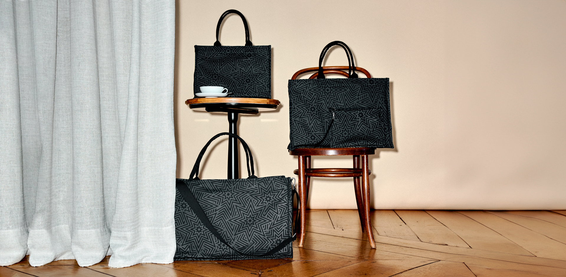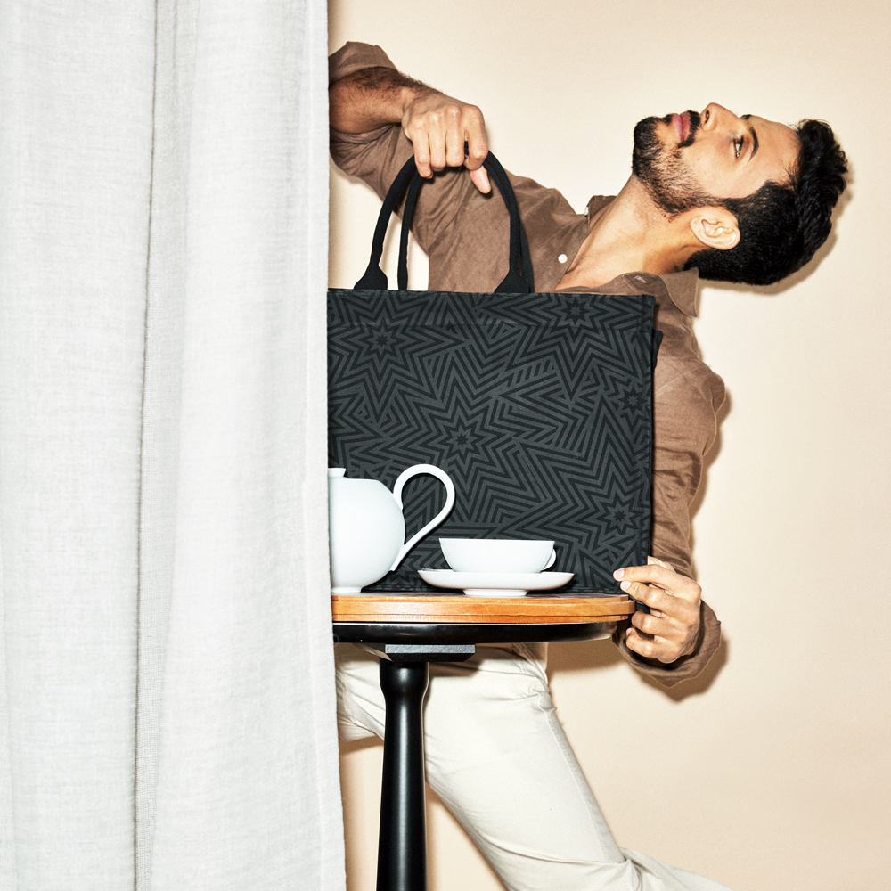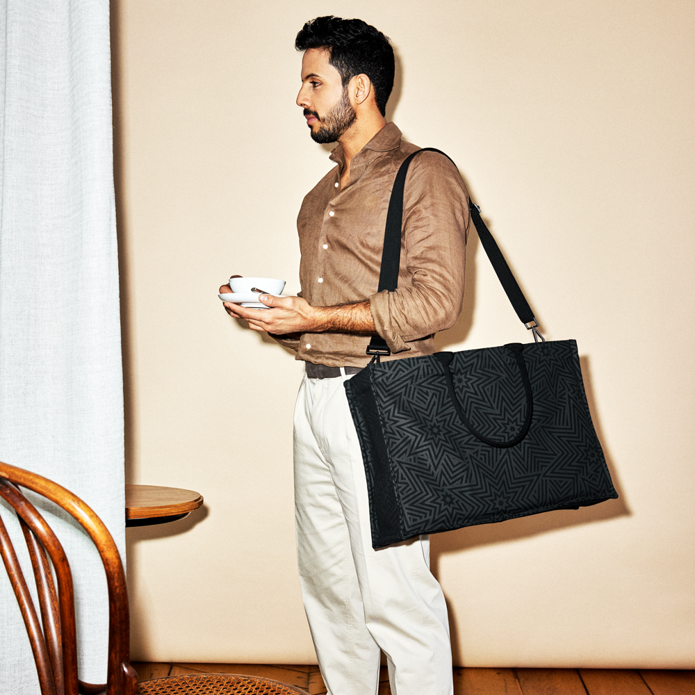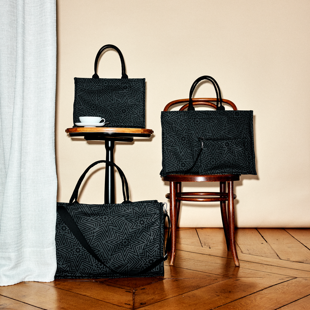 Markant und reduziert zugleich. Das ikonische SIEGER Muster Star Explosion ist subtil in Schwarz- und Anthrazittönen gehalten. Sterne tragen eine positive Symbolkraft und haben Menschen als leuchtende Himmelskörper von jeher auf vielen Reisen und Routen geleitet. So hat dieses universelle Dessin das Potenzial, Lieblingsbegleiter zu werden – ob im Office oder im Gym.