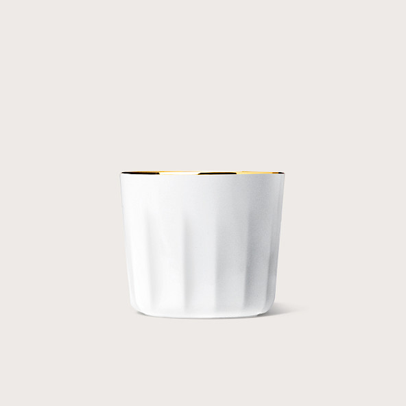 Die Champagnerbecher Sip of Gold von SIEGER by FÜRSTENBERG verbinden feinstes Porzellan mit glänzendem Edelmetall, das im Zusammenspiel mit einem Getränk Hunderte von Reflexionen erzeugt. So entsteht der namensgebende Eindruck flüssigen Goldes.